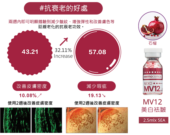 兩週內即可明顯體驗到減少皺紋、增強彈性和改善膚色等延緩老化的抗衰老功效。 石榴外泌體、積雪草葉外泌體可溶性維他命(A,B1,B2,B3,B5,B6,B7,B9,C,D,E,K)透過 10 種透明質酸、抗氧化提亮和強效保濕。
