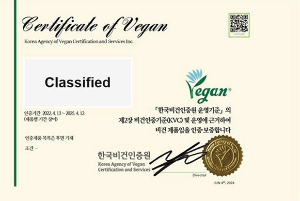 KOREA AGENCY OF VEGAN CERTIFICATION AND SERVICE機構認證